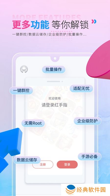 红手指免root、免调试分辨率完美适配所有低中高端配置手机,免root免分辨率即可使用龙之谷、coc部落冲突、梦幻诛仙、街头篮球、仙境传说RO、蜂窝考拉、叉叉助手等辅助工具,界面清新,轻松上手,小白无伤害.