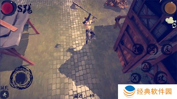第二个是X加△的组合技,这技能是3段伤害,对面是满血武士的话只需要转四下半就死了,起手可以用闪加△跳劈打硬直然后无脑X加△,也可以直接闪到他旁边按。被打到只能逃,想对砍也会被打断攻击。