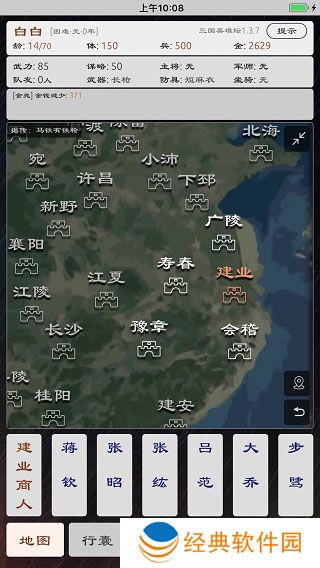 开局选择出生豫章,在豫章和寿春两个移动,对话陈登,张昭,徐盛,张纮,凌统,太史慈,鲁肃,收服陈登后到豫章,会稽两地移动,继续对话并收服张昭,徐盛。收服张昭,徐盛的武器可打孙韶获得,如果不出9000元买一个。
