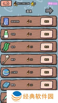 2、精美的画面:游戏采用精美的画面和可爱的动物形象设计,让玩家沉浸在一个梦幻般的温泉度假村中,用金币也可以购买到各种各样的道具。