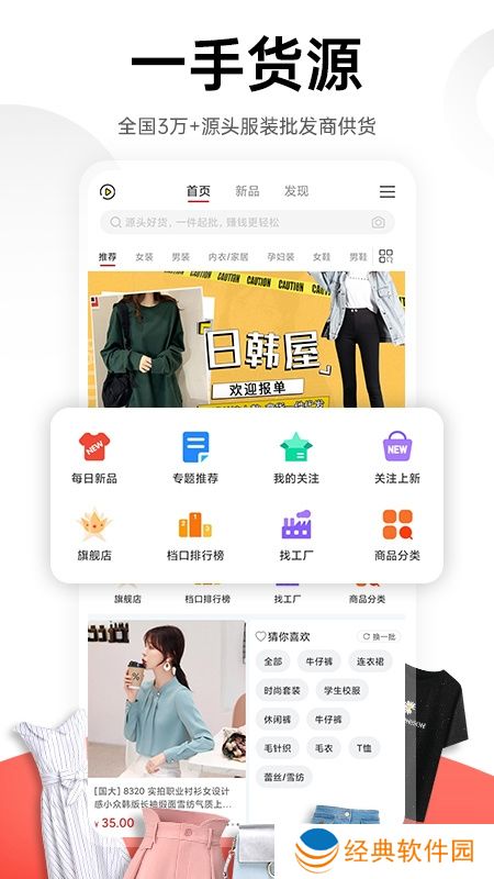 提供女装、男装、箱包、鞋子等一手货源批发,支持一键上传、以图搜款和一件代发,是淘宝卖家微商开店拿货首选网批平台
