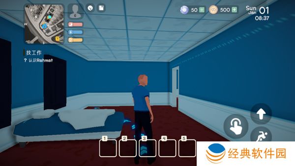 3、玩家除了要找工作,还要好好管理好主角的财务,玩家必须做好财务规划以支付房租、购买食物和购买生活必需品。玩家在理财上也要慎重,不可大手大脚。