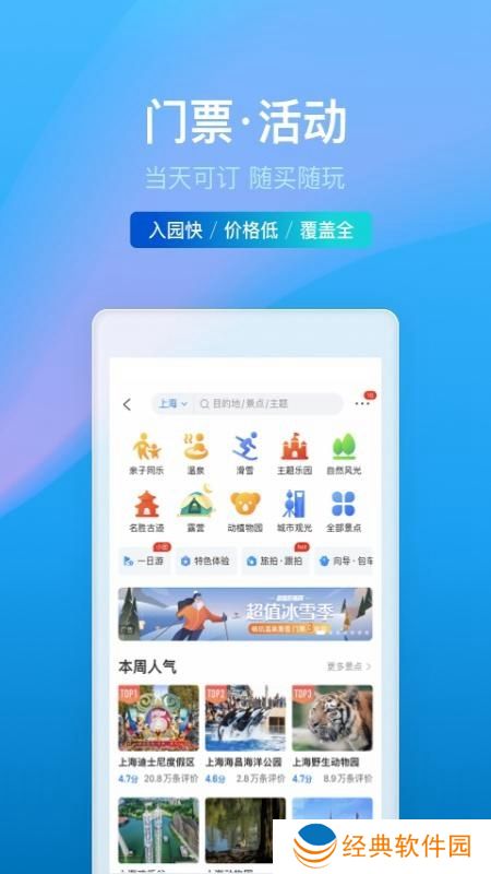 6.全站搜索:集目的地、酒店、景点、旅游、机票、门票、火车票、团购等搜索功能于一体,查找更方便快捷。