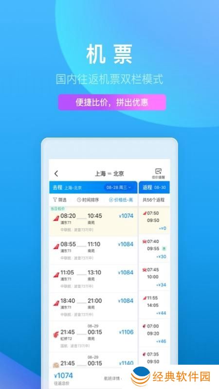 2.机票: 低价助手,航司直销,手机订票方便又优惠,各种价格、各种组合等你来订;预约选座,轻松实现掌上值机。