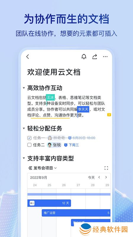 应用亮点在线协作文档、实时协同编辑、功能更丰富。