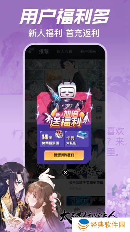 2.方便使用BILIBILI账号登录,轻松观看漫画,新人上线送福利,丰富漫画阅读券送不停,让你免费看漫画最终看个过瘾;