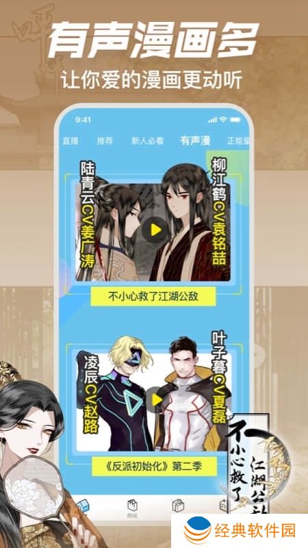 3.海量精品国产漫画,全新作品实时首发,手机必备漫画平台,人气博主正版更新,组队看漫画弹幕互动,专属福利轻松领取。