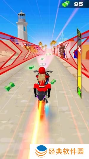 2、道具使用:游戏中设有各种道具,如加速药水、护盾等,玩家可以在比赛中使用这些道具来击败对手或应对各种情况,感受最极限的速度冲刺。