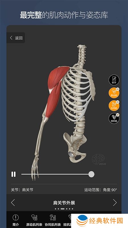 3、中国最具完整的3D肌肉运动与姿态库,多种动作呈现方式以及详细的动作讲解。