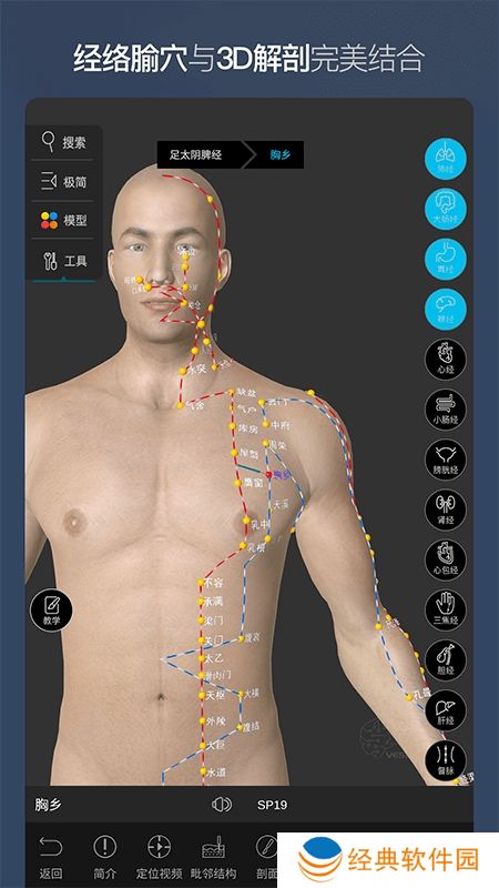 4、全球第一个符合新国标的3D针灸解剖人体,将腧穴解剖和针灸完美整合,让穴位的进针深度,角度,周边组织一目了然,危险穴位也能游刃有余。