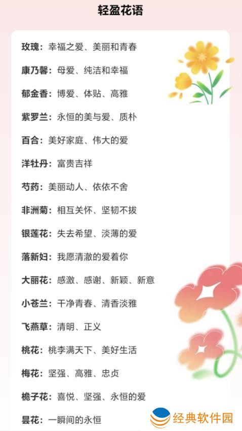 2、用户可以在光花语言功能中在线查看各种花语言百科全书。