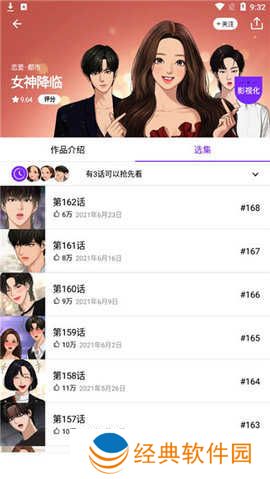 2、漫画展示与分类:软件以丰富的审美形式展示漫画,点击即可深入了解更多内容和背景故事。