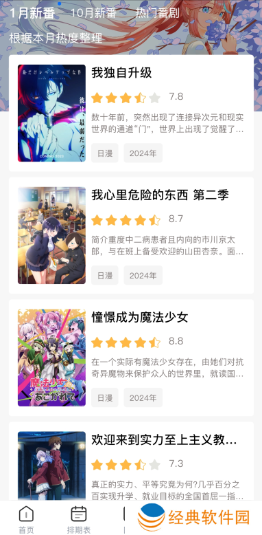 支持每日漫画、剧场版、经典话剧、世界等内容,可以按年找到流行的日本动漫。