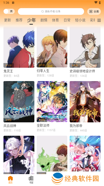 2、酷漫熊分类清晰,漫画按类型和作者分类,便于用户查找。