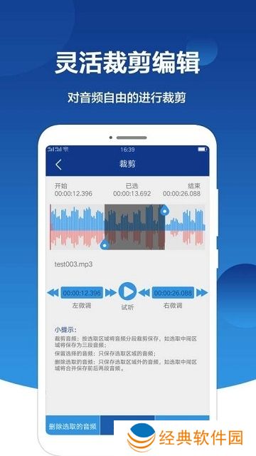 音频提取大师提供了音频裁剪功能,可以对提取或者外部导入的音频文件进行裁剪,以保留真正有价值的部分