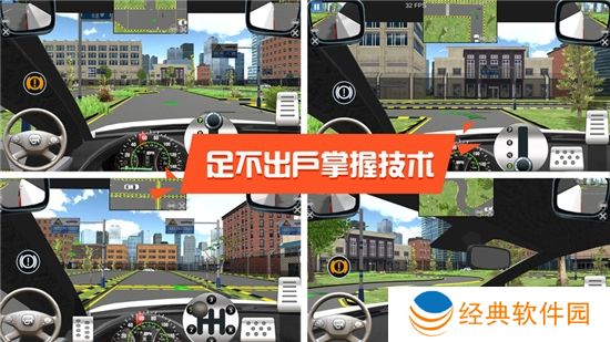 3D驾驶试车包括视频教学、真实方向盘、穿线油门、手动和自动变速箱切换等。