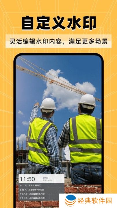 3、工时水印相机拍摄完现场照片后,还可以自定义添加文字记录工作信息。
