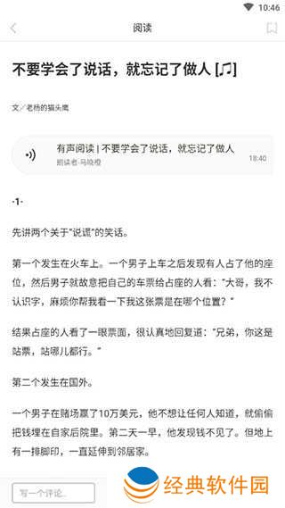 3、点击作者写的文章进进到文章阅读界面,在阅读界面中可以看到网友的评论、点赞和转发数目,假如你喜欢这个作者写的文章还可以收听该作者。