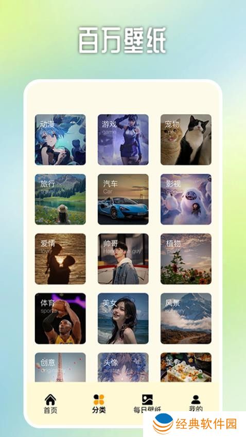 3、百万张壁纸可供选择,多种类别,每日更新,只需点击即可保存高清大图。
