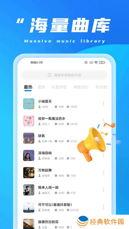 3、实时在线搜索您喜爱的音频材料,并在几秒钟内将其下载到本地。