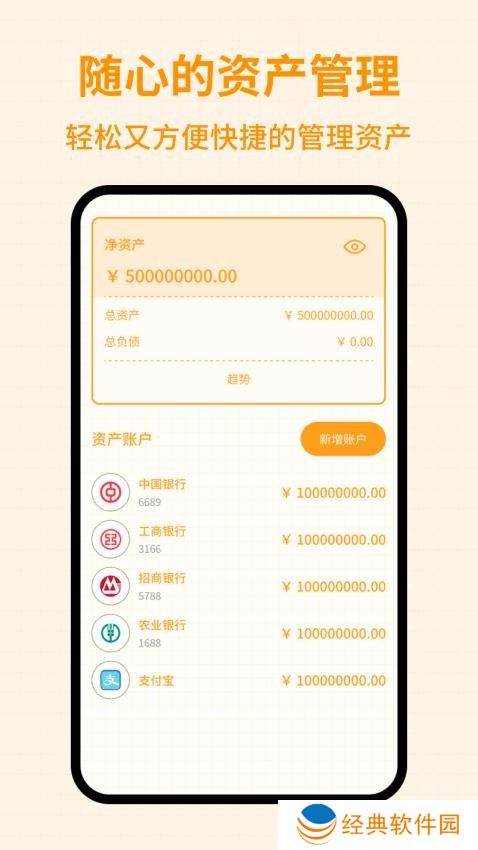 2、在线添加账户信息可以为用户提供清晰详细的资产信息。