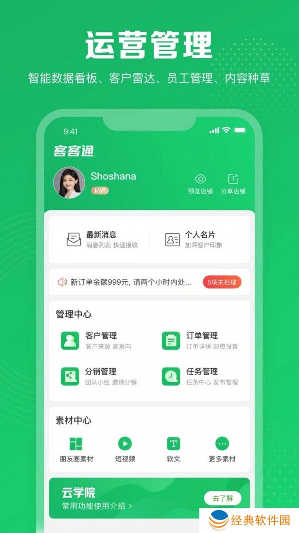 客客通软件基本内容介绍1、一个智能方便的在线办公工具,让您可以随时管理您的商店。