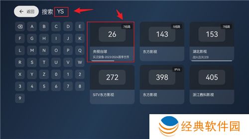 3、在搜索页面输入你要搜索的节目,比如你要搜索央视台球,你直接选择央视的首字母即可完成搜索。