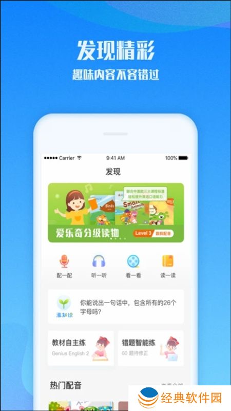 爱乐奇官方最新版是一款能够满足3至18岁的英语学习,与现行公立学校30余套英语教材及课外主流培训教材完全配套。一站式的教学服务,让孩子开口说英语不是难事,欢迎下载体验吧!