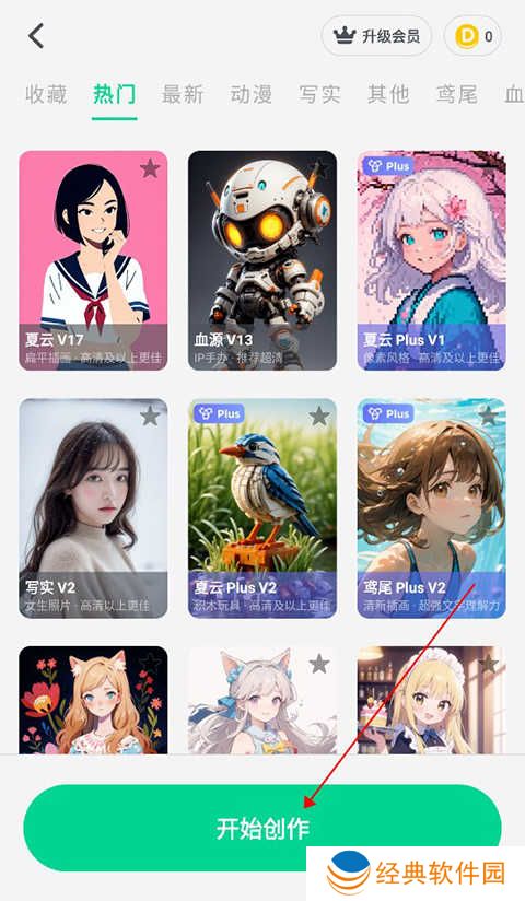 3、在进入绘画页面前,用户可以先选择一个绘画形象,然后AI就会按照这个形象进行绘画,选择完点击下方的“开始创作”即可。