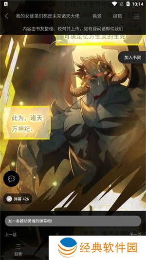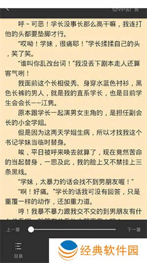 3、打开你喜欢看的书籍,app支持章节目录选择、夜间模式、自定义调整亮度等功能。