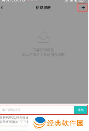 点击右上角的加号,输入需要屏蔽的标签,点击添加即可。