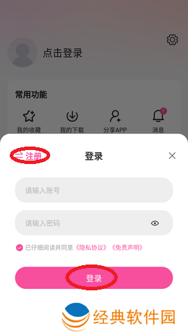 1、在本页面点击下载该软件,进入APP,点击“我的”,再点击上方登录按钮;