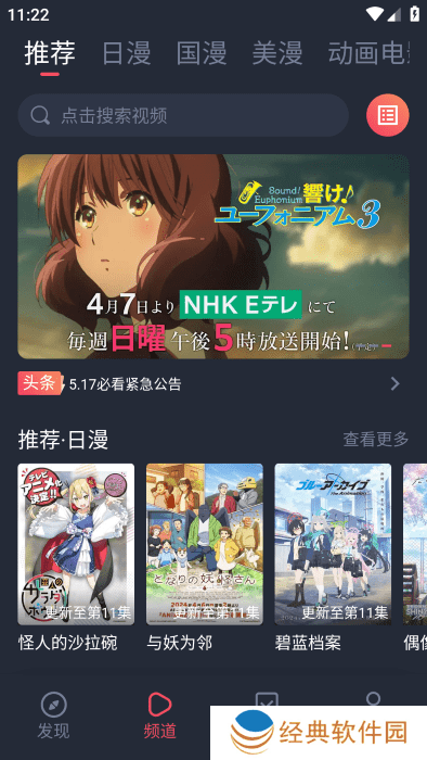 热门推荐:最新最热的番剧都可以在线免费观看,界面清爽,分类很详细;
