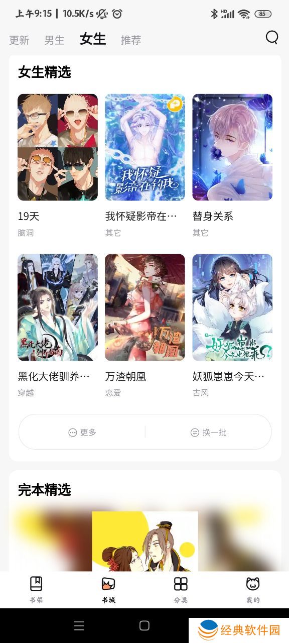 2、对新旧漫画进行分类处理,内置推荐系统不断推荐符合粉丝口味的漫画。