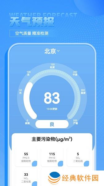 3、跟踪城市空气质量,向公众提供旅行和健康指南,及早了解空气质量好坏。