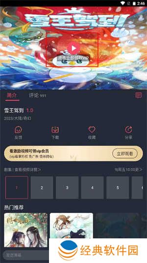 2、在动漫播放界面中,上方会有一个“点击立即领取VIP”,直接点击上方的播放区域。