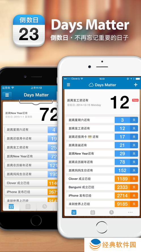 倒数日.Days Matter可以提供人性化的纪恋日和日期的记录,为我们所有玩家带来不一样的日期查询服务,还有简单的软件界面让我们用户查看,而且还提供独特的日期设置和日期定时的功能,让我们所有用户都可以快速的提高自己的工作效率,感兴趣的小伙伴欢迎点击下载下来吧。