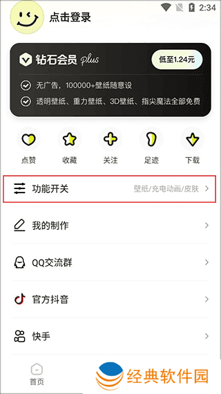 进入个人页面后我们找到功能开关,然后我们点击进入。