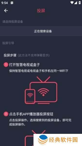 3、还是点击右上角的投屏功能,然后就可以为你自动搜索设备。