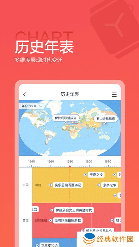 全历史app将时间、地图和历史全面结合,**度的展示长达130亿年的世界史;