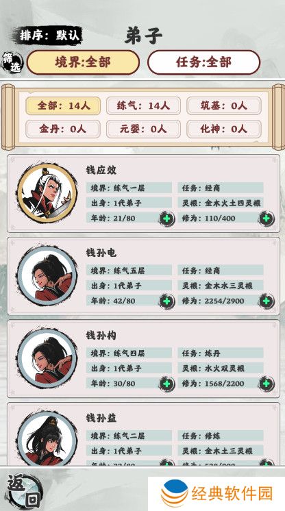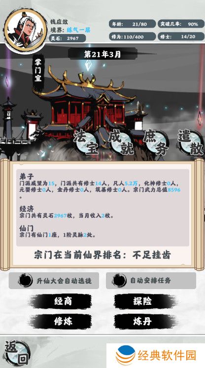 2、多样化的角色:玩家需要管理自己的弟子,每个弟子都有着独特的技能和性格,需要制定不同培养计划。