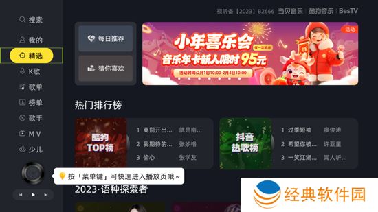 当贝酷狗音乐tv版安装包是为喜欢听歌的用户开发的酷狗音乐当贝版,海量无损正版歌曲等你来畅听,用户可一键搜索自己喜欢的音乐,免费享受超高的音质的听歌体验,欢迎广大用户免费下载。