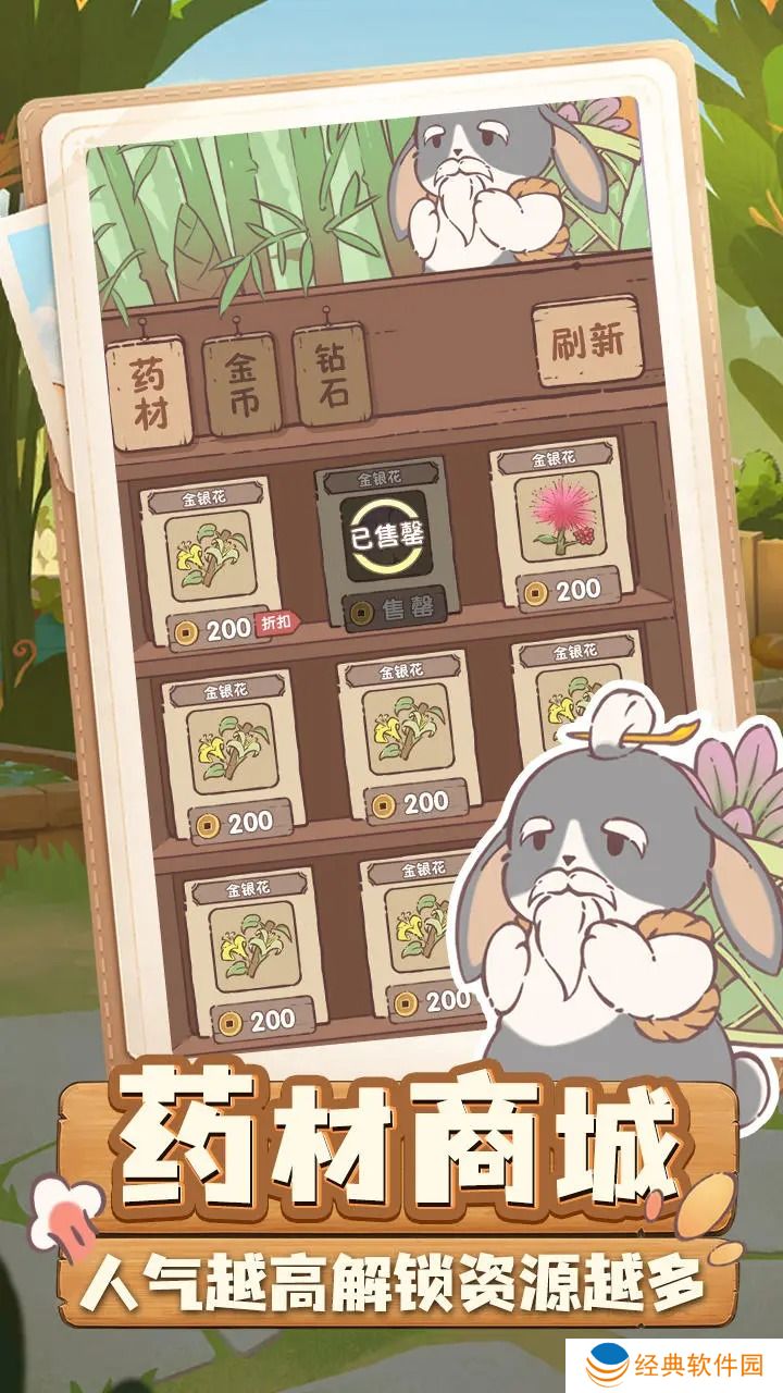 兔与药特色1、这款模拟经营手游以制药为主题,游戏画面可爱新颖,玩法有趣,体验魔性,还有昼夜交替的机制。