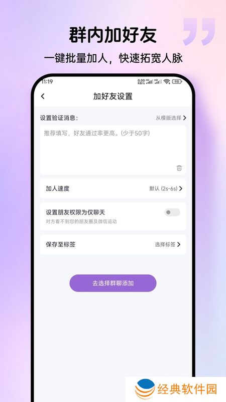 1.批量添加好友:能够通过微信群自动添加潜在客户,扩展人脉资源。
