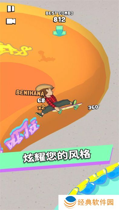 2、游戏中有多种技巧动作可供玩家选择,自由组合这些动作来完成炫酷的滑板表演。