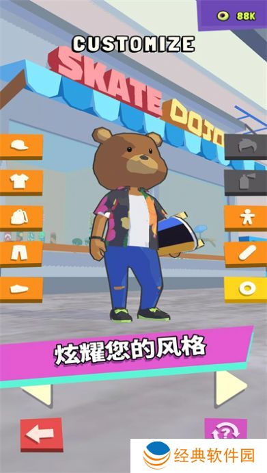 2、个性化装扮:游戏提供丰富的装扮选项,玩家能够去自由搭配不同的服饰和滑板配件。