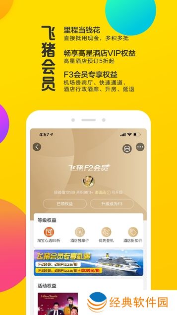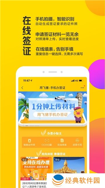 3.飞猪旅行app(原阿里旅行App)提供国内及海外200000余家酒店、民宿、客栈、酒店式公寓在线预订服务;提供100000多条国内及出境旅游线路,并提供电话卡、境外Wi-Fi、租车、签证等一站式服务;