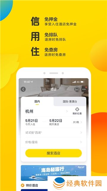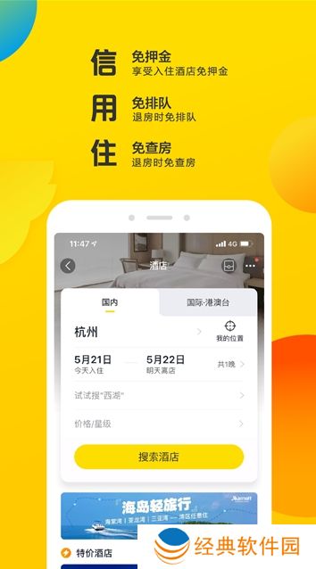 4.专享「信用住」酒店,免押金、免查房、免排队;