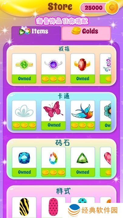 1、丰富的美甲款式:游戏中拥有多种美甲款式,包括法式、纹身、珠宝、卡通等,满足不同顾客的需求。
