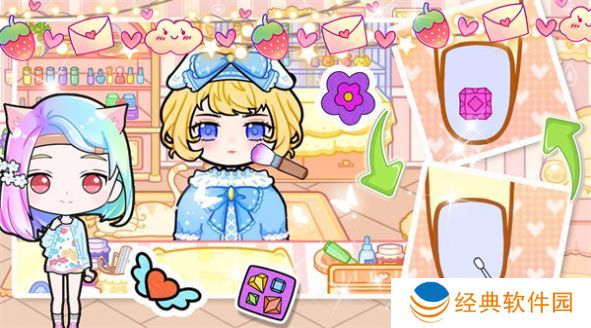 2、精美的场景设计:迷你小镇公主美甲游戏中的场景非常精美,每个公主都有自己的房间和专属的美甲台,让玩家感受到身临其境的美甲体验。